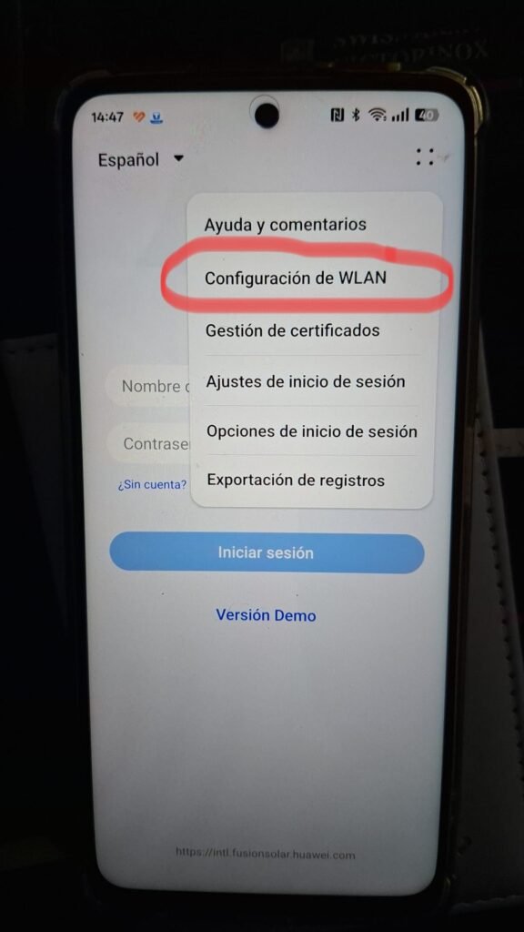 3. Ahora que ya estamos conectados al wifi local del inversor, entramos en la aplicación de fusion solar y le daremos a los 4 puntitos «…«